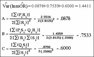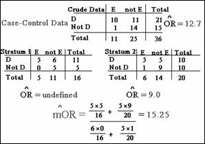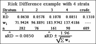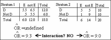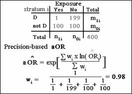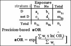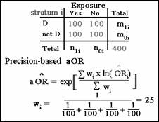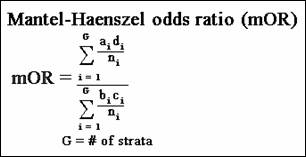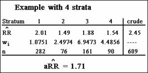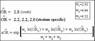 formula for the adjusted odds ratio for these data. Now, given that the weights for each strata