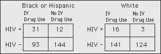 seroprevalence survey of HIV among prostitutes in relation to IV drug use. The crude prevalence odds ratio is 3.59. (You may wish to use a calculator to answer