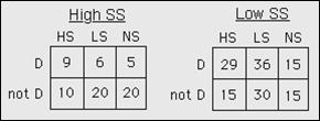 categories: nonsmokers (NS), light smokers (LS), who smoke a pack or less each