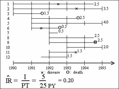 disease-free subjects followed over a 5-year period from 1990 to 1995.